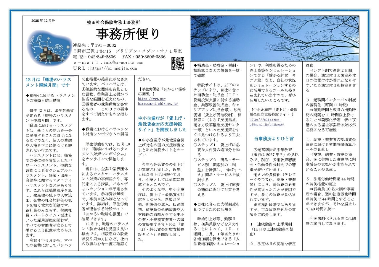 事務所通信2025年12月号を掲載しました。